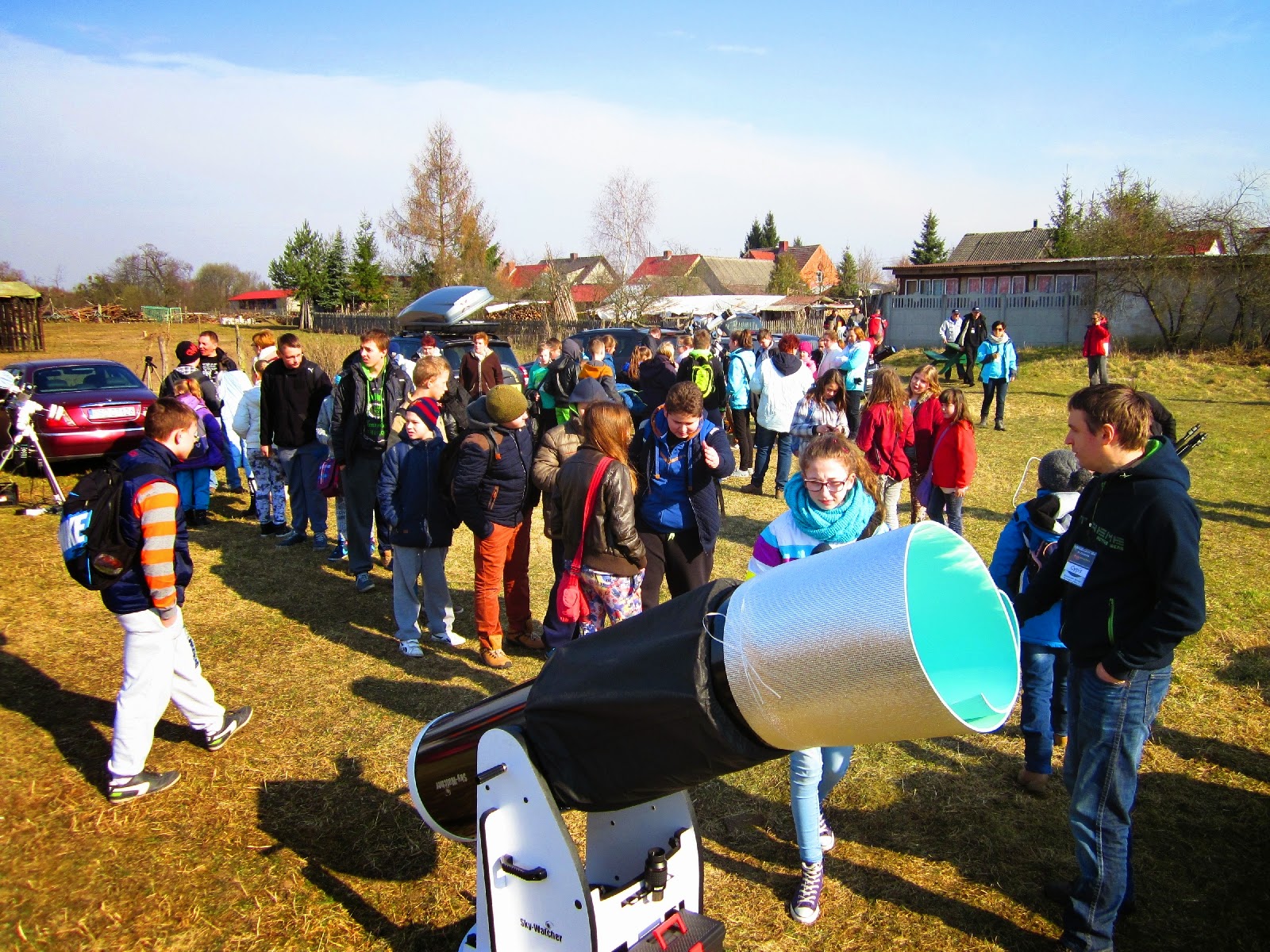 Nie przypadkowo został wybrany taki a nie inny termin zlotu. Dlaczego - wiadomo! 20 marca 2015 miało miejsce częściowe zaćmienie Słońca. To się dopiero działo! Pole obserwacyjne pękało w szwach. Oprócz zlotowiczów na zaćmienie dotarła spora grupa mieszkańców Zatomia i okolic oraz kilka grup szkolnych dzieci. Były pokazy oraz wykład dla uczniów przeprowadzony standardowo przez kolegę Marka.